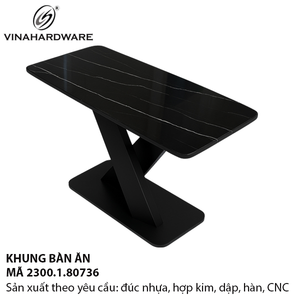 Khung bàn ăn Vinahardware được thiết kế chữ X độc đáo, tạo điểm nhấn mạnh mẽ và cân đối cho không gian.