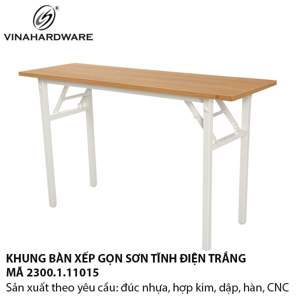 Khung bàn xếp gọn sơn tĩnh điện trắng Vinahardware được sản xuất theo tiêu chuẩn cơ khí chính xác, sử dụng thép hộp 30×30 mm, gia công CNC, hàn robot, phủ sơn tĩnh điện trắng mịn.