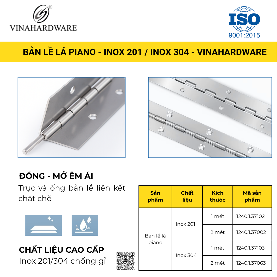 Bản lề lá piano inox 304 là lựa chọn hoàn hảo cho những ai đang tìm kiếm một loại bản lề chất lượng cao, bền đẹp, sang trọng và sử dụng êm ái.