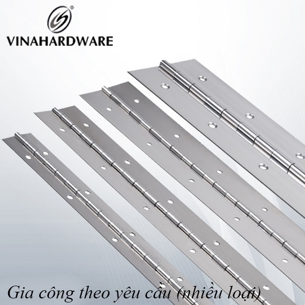 Hoa Đạt có xưởng sản xuất là Vinahardware, nhận gia công theo cầu các loại bản lề lá piano. Dưới đây, là một số sản phẩm bản lề piano với các kích thước và màu sắc khác nhau mà Hoa Đạt đã thực hiện: Bản lề lá piano làm từ inox 201, 304, bản lề piano bảy màu,....
