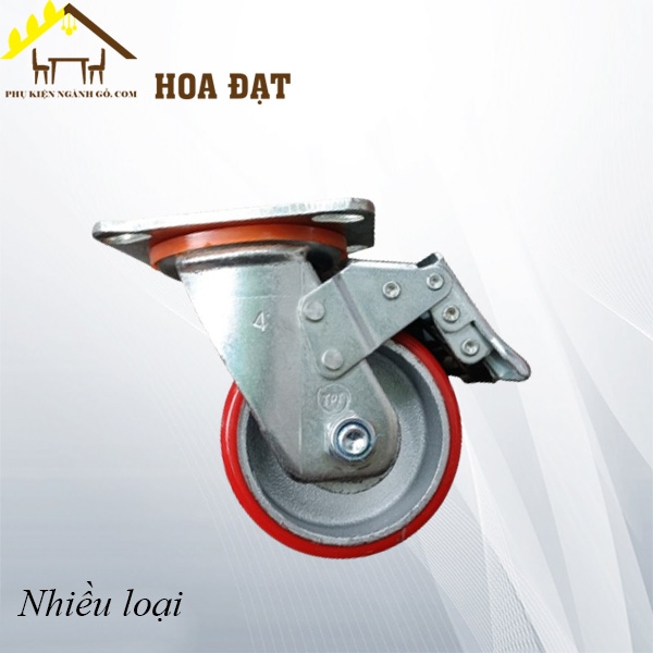 Bánh xe PU gang, càng M6, có khoá là một trong nhiều loại bánh xe hiện nay được trang bị thêm khoá bánh, giúp cho quá trình di chuyển của bánh xe trở nên dễ dàng, thuận tiện và an toàn hơn,.