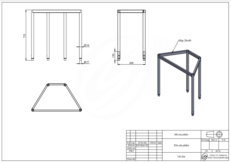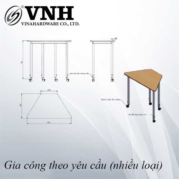 Bộ bàn hình than, sơn xám - VNH3307550 - 330x865x750mm