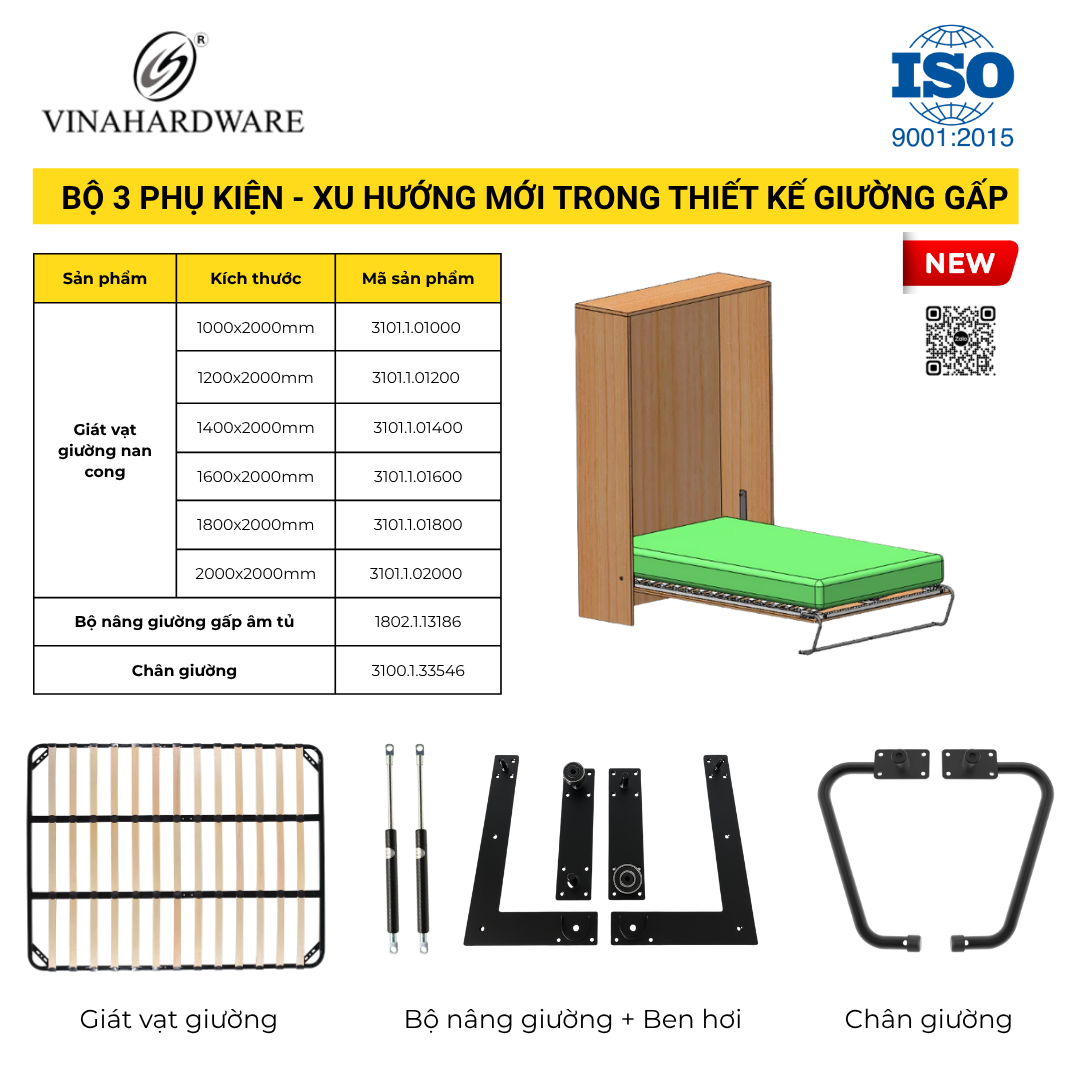 Tay Nâng Giường Gấp Âm Tủ Vinahardware – Dễ Lắp Đặt, An Toàn, Hiệu Quả