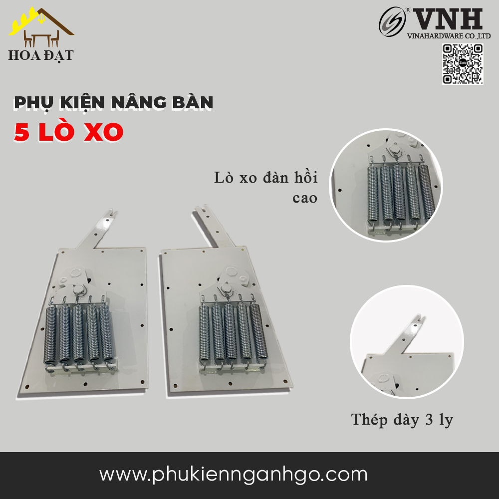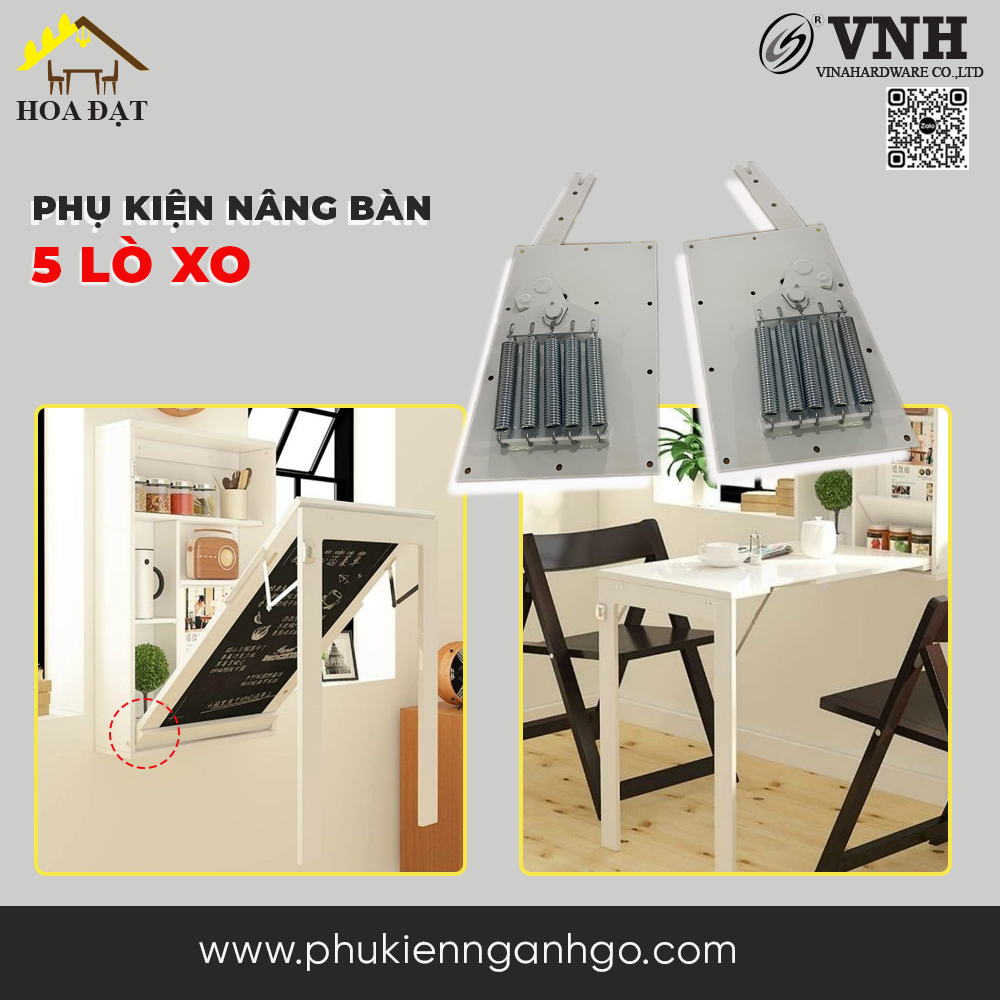 Tay nâng mặt bàn 5 lò xo Vinahardware 2500.1.33214 là cơ cấu thông minh dùng cho bàn xếp gọn âm tủ, bàn học, bàn làm việc tích hợp trong cánh cửa tủ hoặc vách tường.