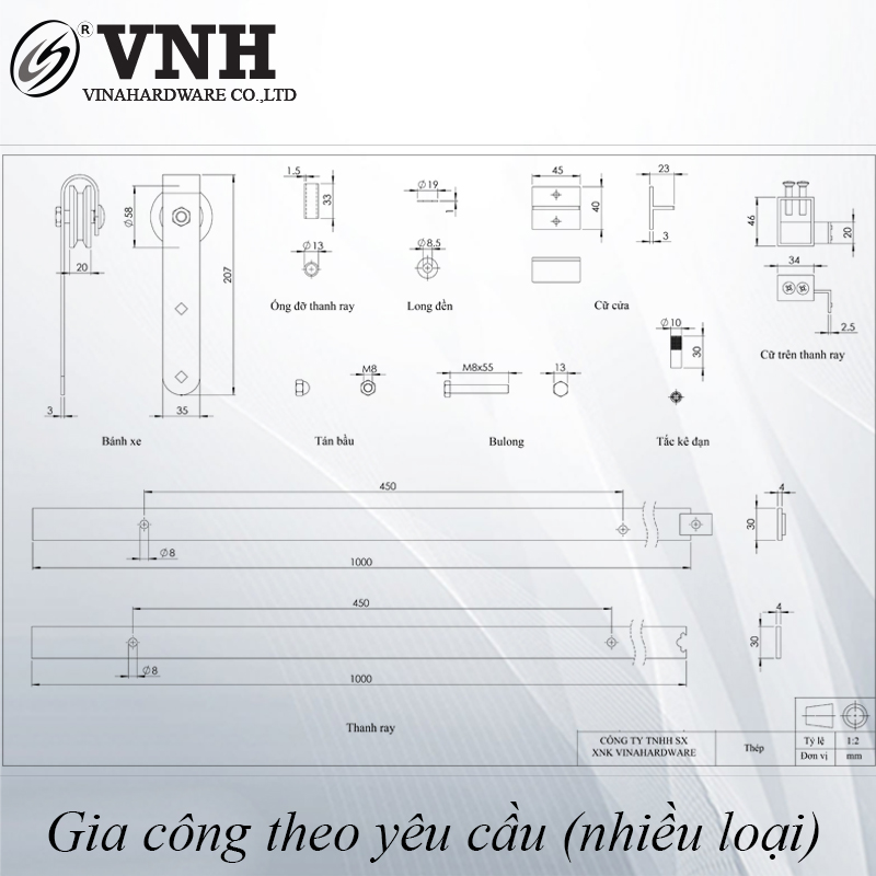 Một số loại bộ ray cửa lùa, Hoa Đạt thực hiện gia công