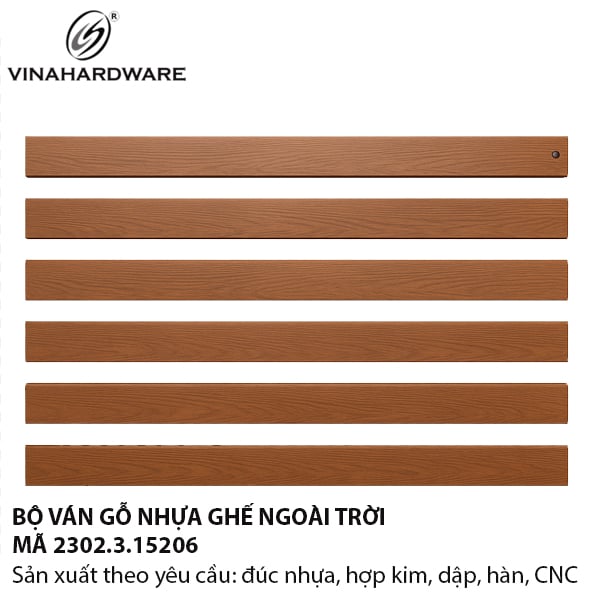 Bộ ván lam nhựa composite Vinahardware 2302.3.15206 là dòng vật liệu cao cấp thay thế gỗ truyền thống trong các sản phẩm ghế công viên, ghế sân vườn, khu nghỉ dưỡng.