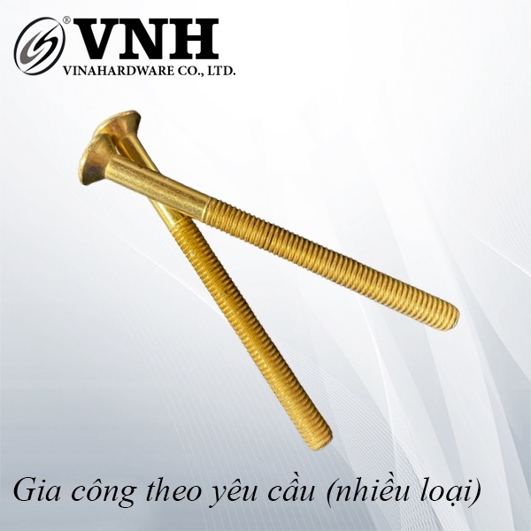 Bu-lông đầu côn 90 ° của Vinahardware có lớp kẽm màu vàng đồng sang trọng, lý tưởng cho nội thất tông ấm, tay vịn gỗ sồi, khung nhôm ánh vàng. Đầu côn âm phẳng bề mặt, không cần nút che.