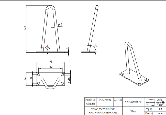 Bản vẽ chi tiết sản phẩm chân sắt hai nan loại 163mm