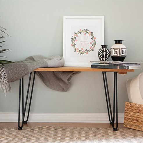 Chân Hairpin thường được sử dụng theo set 3 hoặc 4 chân để đảm bảo tính ổn định và vững chắc. Khung đế sắt hình chữ V với 4 lỗ vít được sơn tĩnh điện 100% tạo nên sự bền bỉ và thẩm mỹ cho sản phẩm.