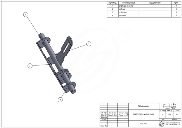 Chốt cửa ngang inox 304 Vinahardware dài 180mm - CCI3100IN