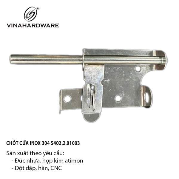 Chốt cửa ngang inox 304 Vinahardware dài 180mm - CCI3100IN - 180mm, dày 1.5mm