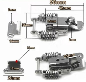 - Tay kéo có cấu tạo khá đặt biệt là có một cung cong lên, nhờ cấu tạo này nó có thể móc gài các hộp có viền nhô lên mà các loại khóa gài khác không làm được