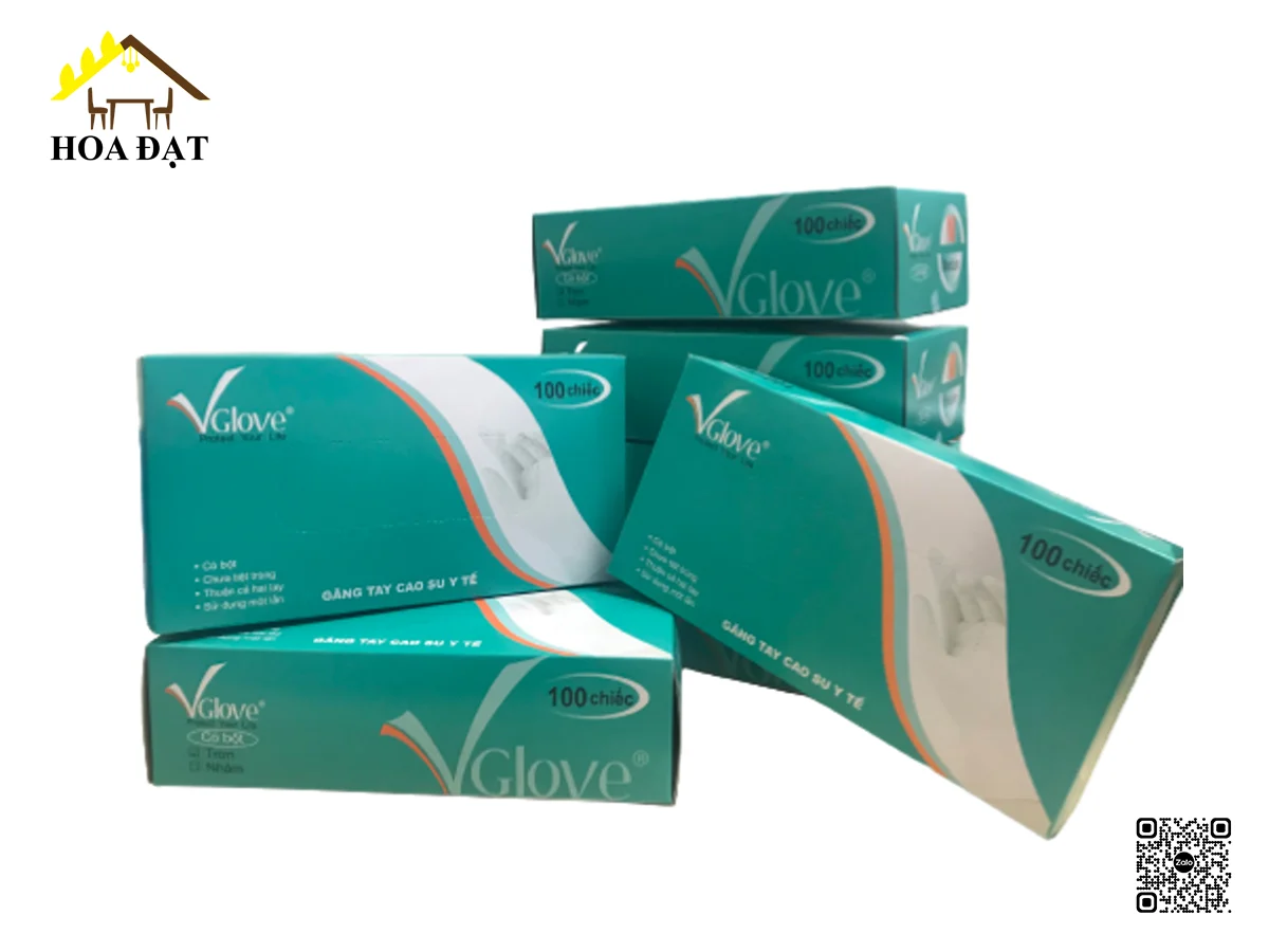 - Găng tay cao su y tế VGlove được phủ bột theo tiêu chuẩn dược phẩm Hoa Kỳ và được làm hoàn toàn từ cao su tự nhiên.