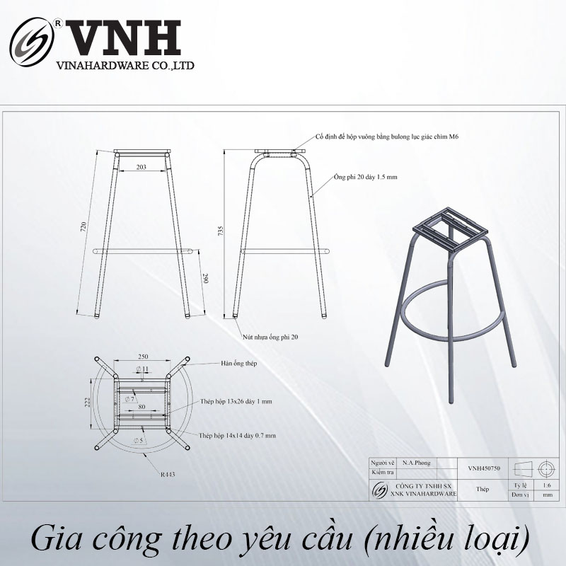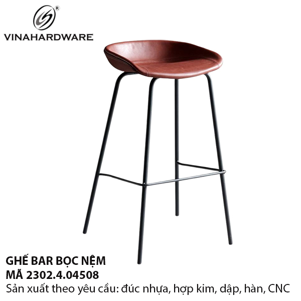 Ghế bar mã 2302.4.04506 được chế tạo từ khung sắt ống Ø22mm, mang đến sự chắc chắn và bền bỉ. Toàn bộ khung được phủ sơn tĩnh điện cao cấp, kết hợp với công đoạn mài sạch mối hàn, giúp sản phẩm đạt tiêu chuẩn thẩm mỹ và độ bền vượt trội.