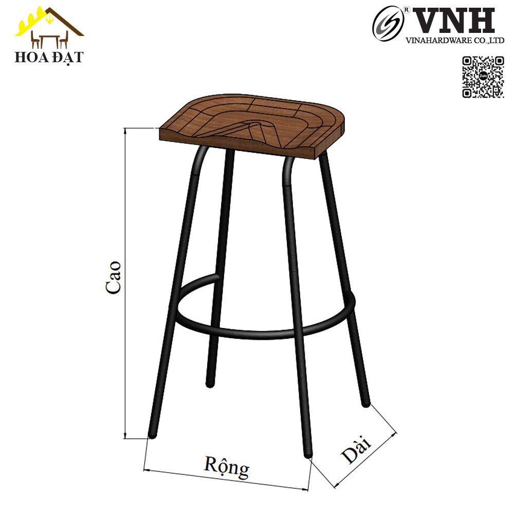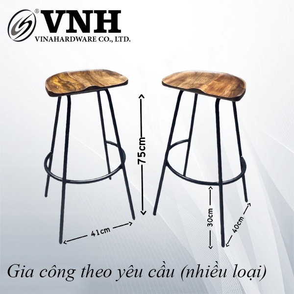 Khung ghế bar mặt gỗ wenge sắt sơn tĩnh điện - VNH450750