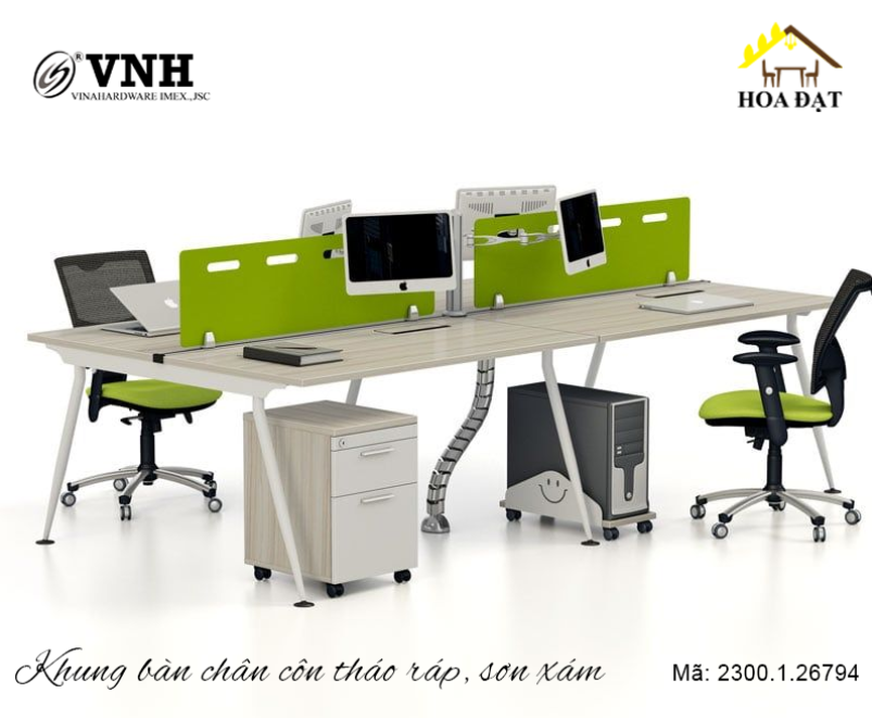 Minh họa thực tế khung bàn chân côn tháo ráp, lắp đặt trong không gian văn phòng cao cấp quận 7