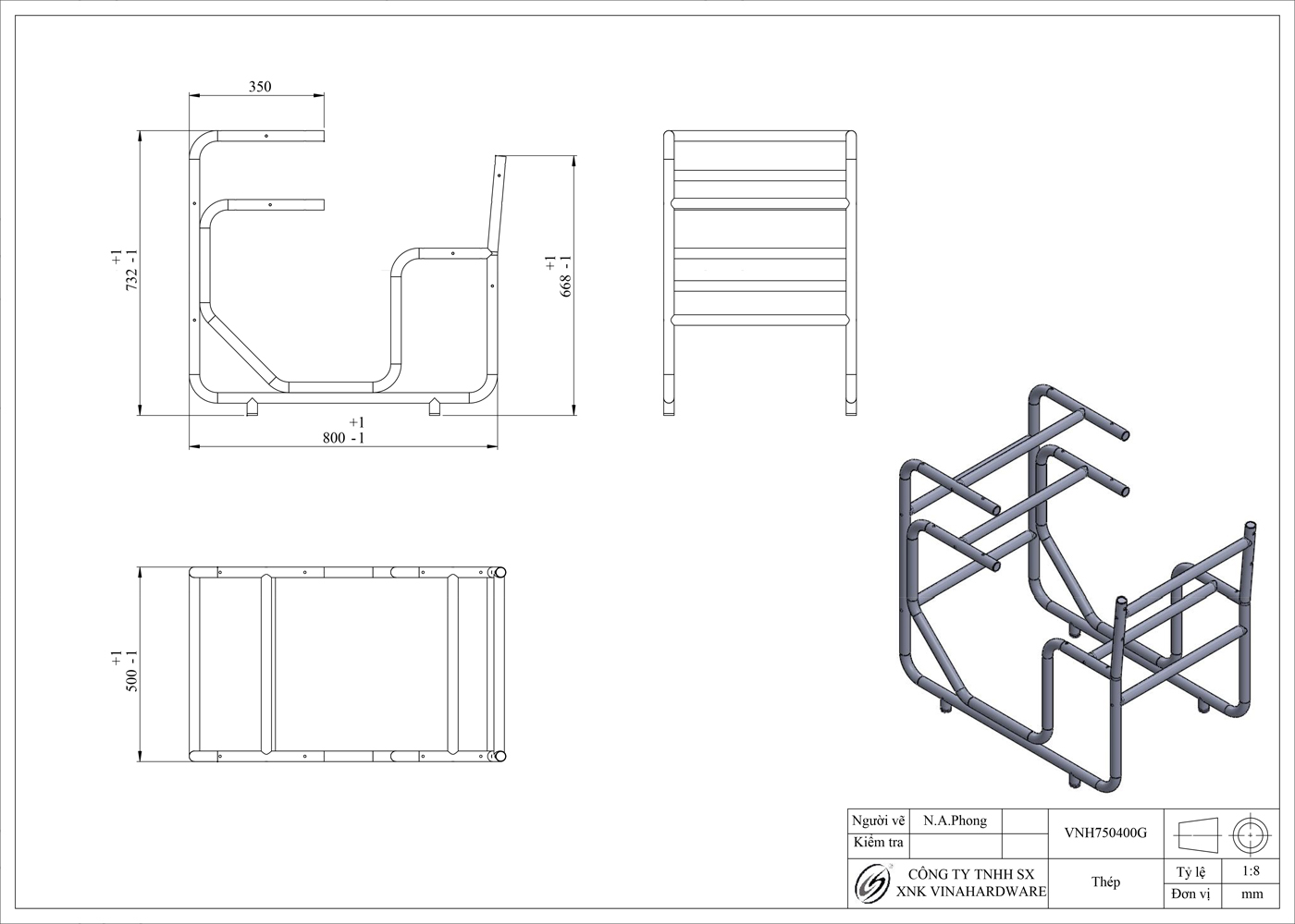 Ghế: Cao ngồi 450 mm, tựa lưng 200 mm