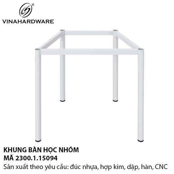 Khung bàn học nhóm 2300.1.15094 được sản xuất với chân ống thép Ø42mm, liên kết ngàm âm dương 20x40mm chắc chắn. Thiết kế tháo ráp tiện lợi, dễ dàng vận chuyển và lắp đặt. Khách hàng có thể tùy chọn mặt bàn MDF, gỗ cao su, plywood hoặc phủ melamine theo kích thước riêng của dự án.