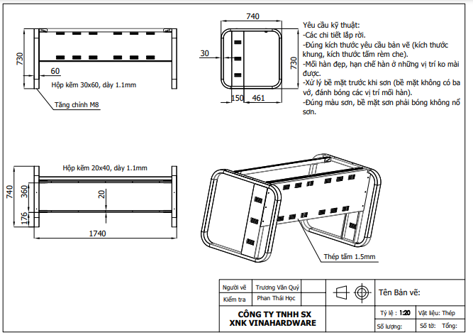 Bản vẽ chi tiết sản phẩm Khung bàn sắt, sơn đen