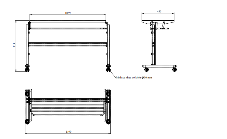 - Kích thước: 1200x600x725mm (Cái)