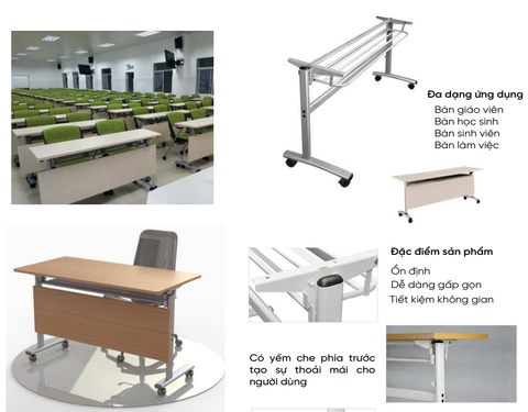 Sản phẩm độ bền cao, dễ di chuyển, dễ lắp ráp, phù hợp cho trường học, văn phòng, hội nghị.