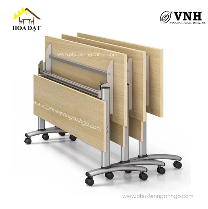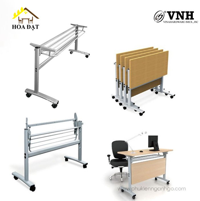 Chân bàn gấp gọn sắt sơn tĩnh điện được thiết kế hướng đến sự tiện lợi tối đa khi có thể gấp gọn một cách dễ dàng. Dưới mỗi chân bàn được trang bị bánh xe có chốt khóa giúp việc di chuyển trở nên nhẹ nhàng hơn, và có thể sắp xếp các bố cục khác nhau tùy theo tính chất và quy mô với mọi không gian lớn hay nhỏ. Chân bàn VNH sở hữu kiểu dáng hiện đại, tính linh hoạt cao phù hợp với không gian văn phòng, phòng học hay khu vực training....