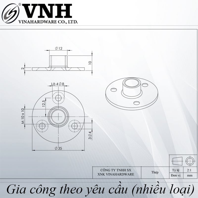 Bản vẽ chi tiết sản phẩm loại Phi M10, đường kính 35mm ( hệ inch)