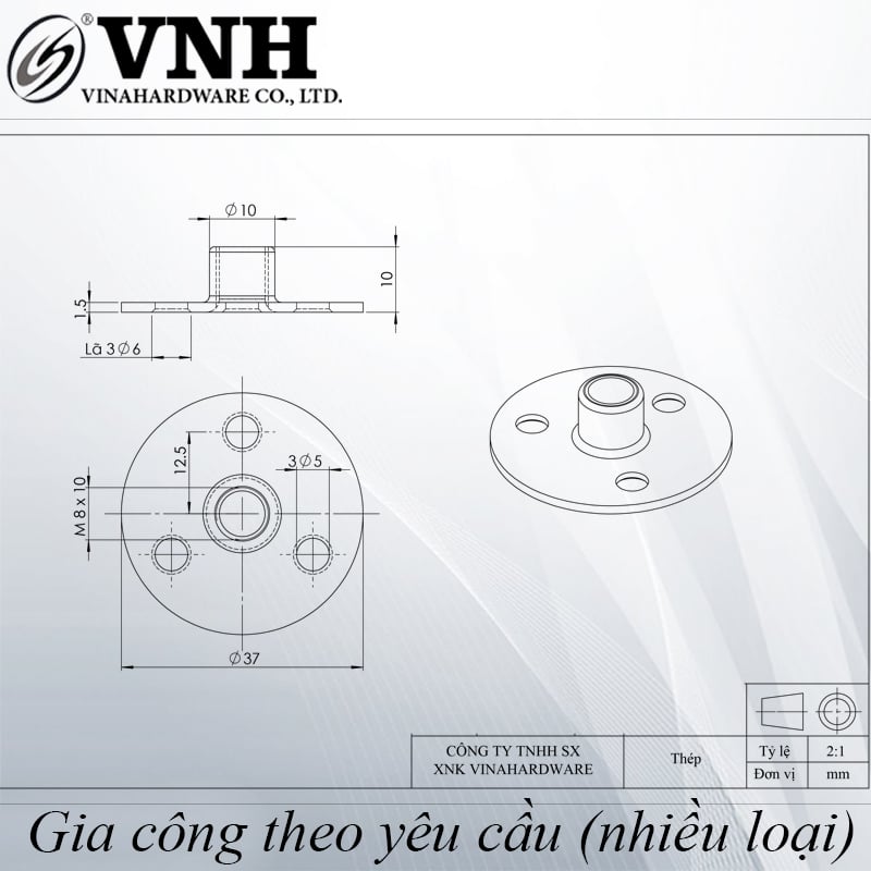 Bản vẽ chi tiết sản phẩm loại  Phi M8, đường kính 37mm ( hệ mm)