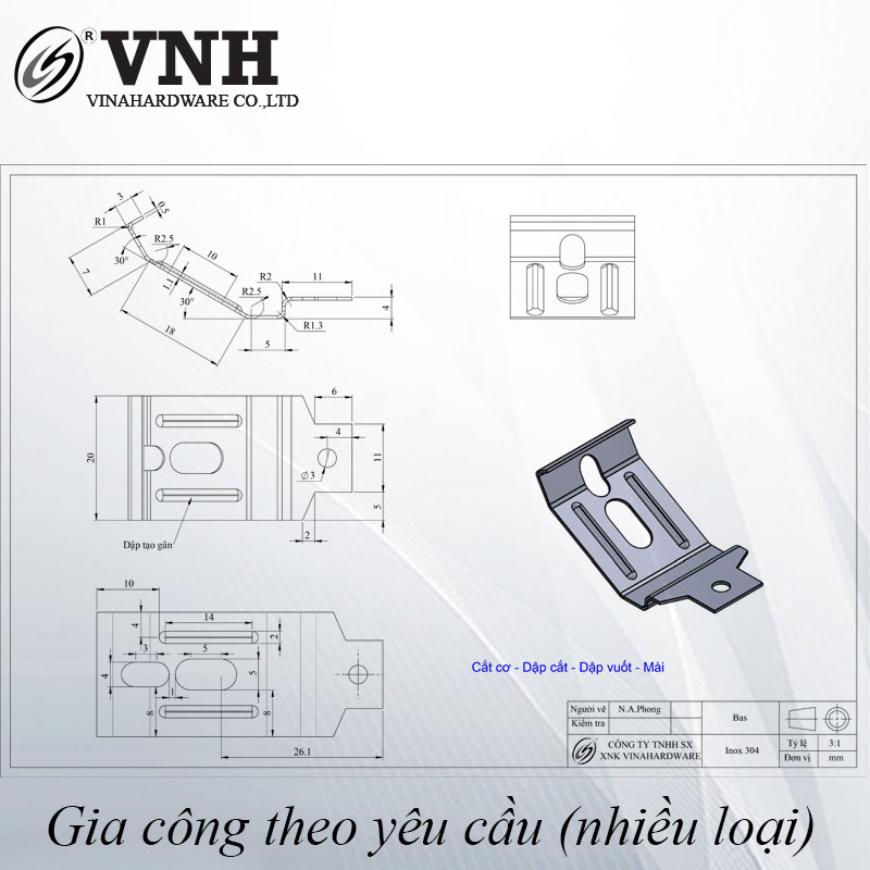- Vật liệu: Inox 304 (có thể gia công theo vật liệu yêu cầu)