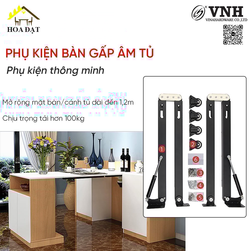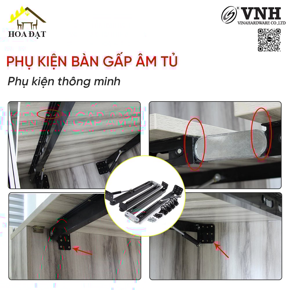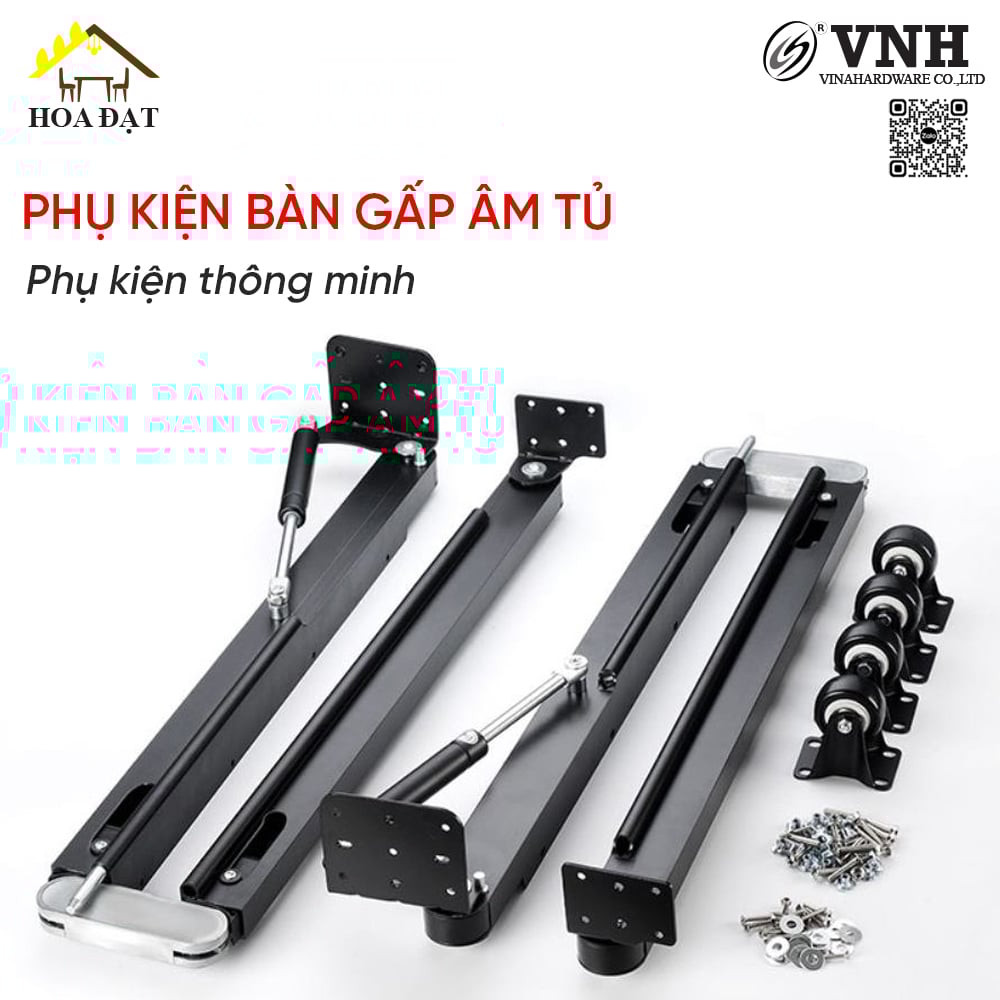 Phụ kiện bàn gập âm tủ là bộ phụ kiện cho hệ tủ thông minh mở và đóng âm các loại tủ trong gia đình như Tủ bếp, tủ quần áo, tủ sách, ... với chức năng tiện lợi khi không sử dụng có thể gập lại giúp không gian gọn gàng.
