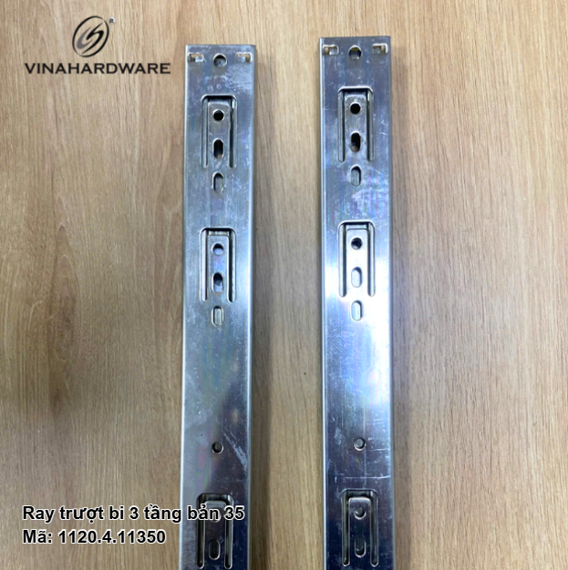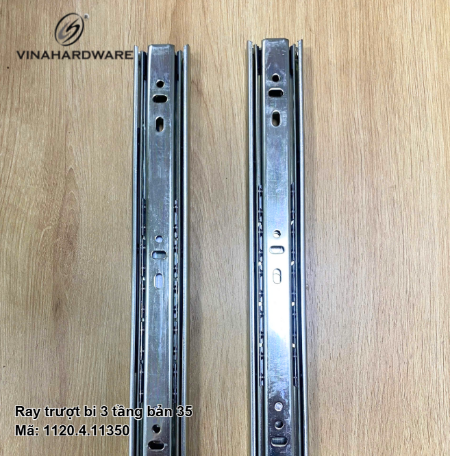 Ray trượt bi 3 tầng bản 35 được sản xuất từ thép mạ kẽm chất lượng cao, bề mặt xử lý chống gỉ sét, đảm bảo độ bền và tính thẩm mỹ. Sản phẩm có cơ chế trượt 3 tầng giúp hộc kéo mở rộng tối đa, vận hành êm ái, không gây tiếng ồn và chịu tải trọng tốt.