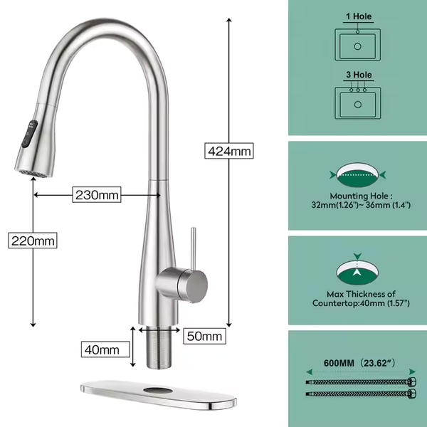 Vòi Rửa Bồn Inox 304 Cao Cấp – Thiết Kế Kéo Rút – Phong Cách Hiện Đại